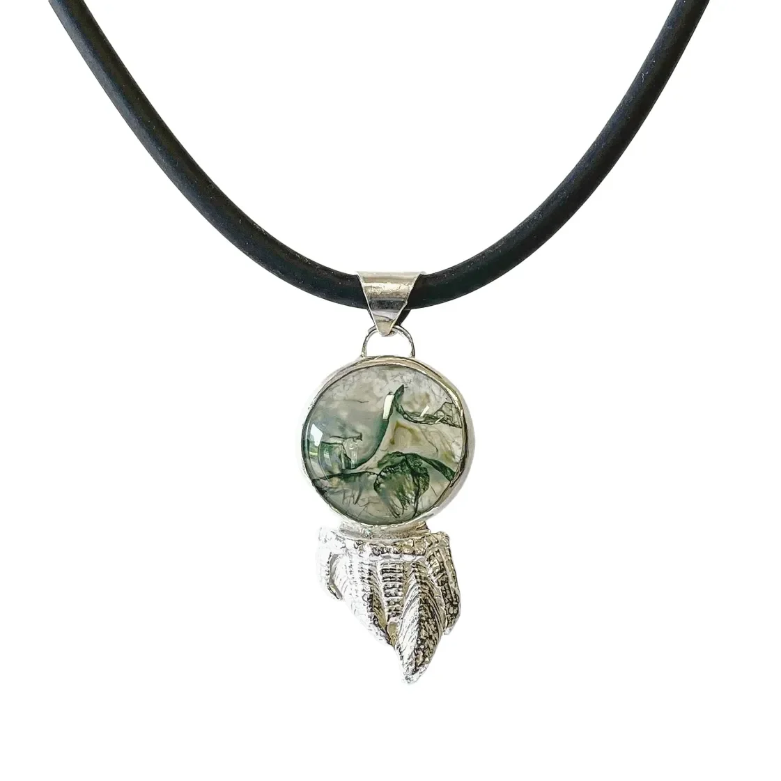 Turquoise and amethyst on black neoprene cord. Stainless steel bayonet clasp. Necklace length 45cm.