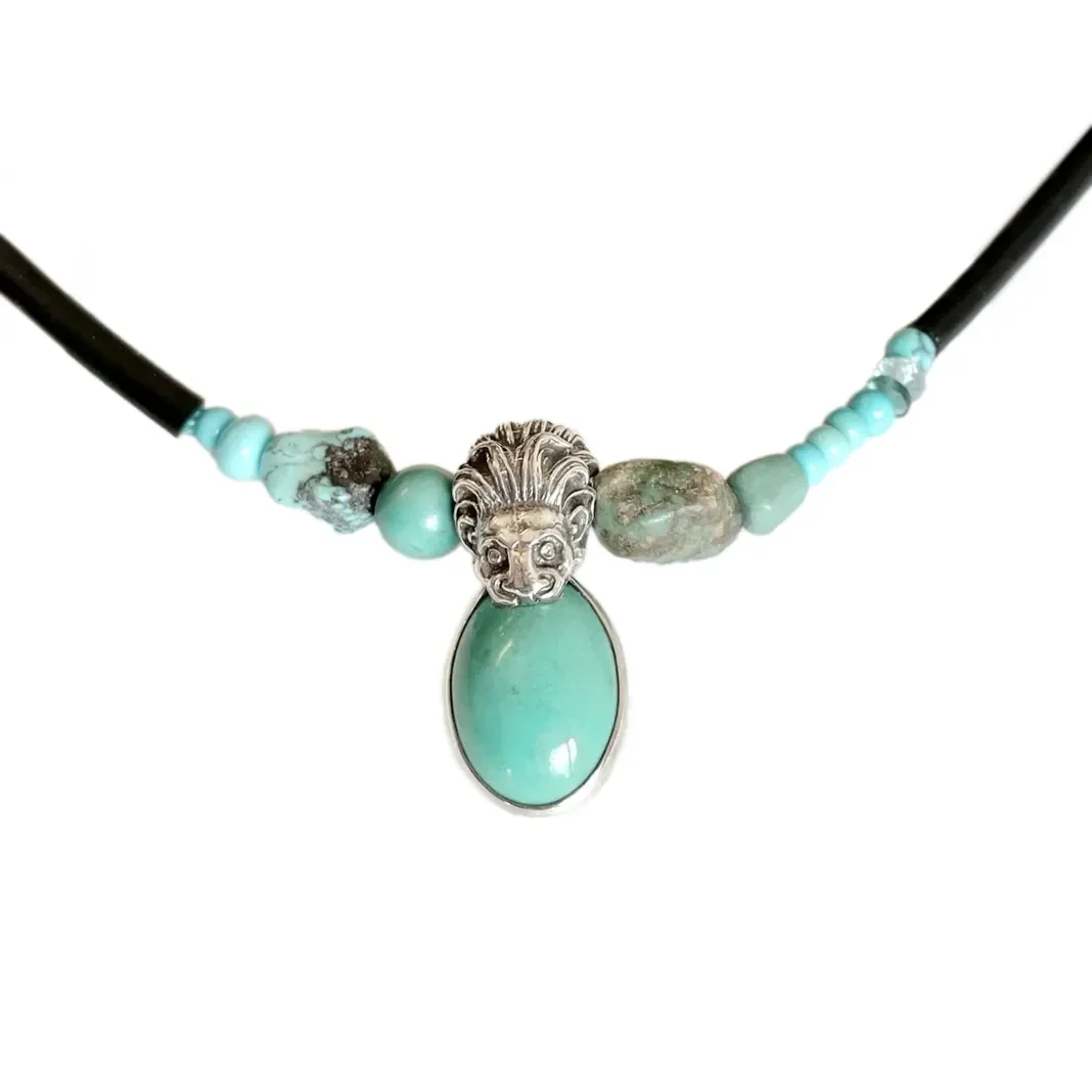 Experience the harmonious power of our exclusive Amethyst and Turquoise Balancing Talisman Necklace, handcrafted at Studio Bronwyn Berman. This unique piece features rough-cut amethyst beautifully paired with a combination of rough and polished turquoise beads. Renowned for its purifying and protective properties, turquoise dispels negative energy while offering balance and stability. The calming qualities of amethyst further enhance stress relief, mood equilibrium, and spiritual awareness. This talisman necklace is a wearable embodiment of tranquility and intuition, thoughtfully designed to bring peace and protection into your life. Handmade with love and care, it’s a meaningful and elegant addition to any jewelry collection.