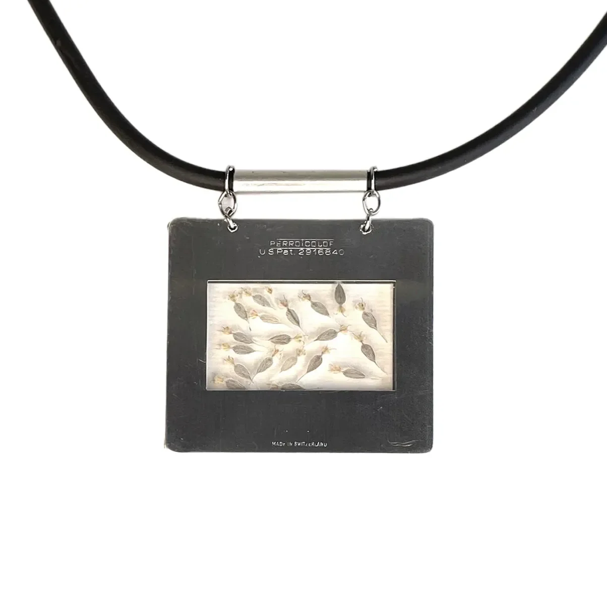 Black neoprene cord. Stainless steel bayonet clasp. Necklace length 45cm.