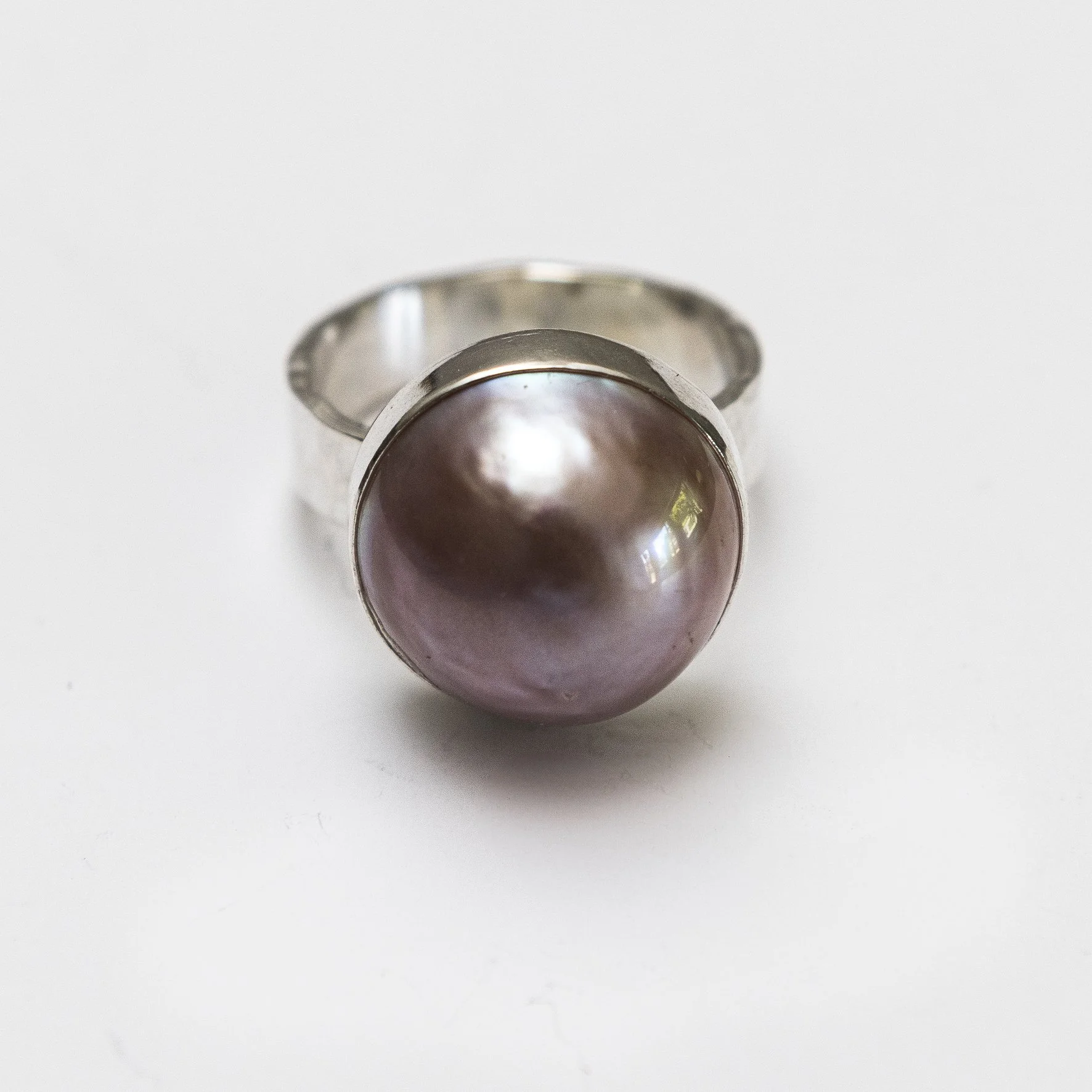 This stunning cocktail ring features a beautiful pink Mabe pearl, bezel-set in premium sterling silver. The luminous pearl, with its soft, iridescent glow, is the centerpiece of this unique, artist-designed ring. Perfect for making a statement at any occasion, this one-of-a-kind ring is crafted with exceptional quality, offering both elegance and individuality. Elevate your jewelry collection with this exquisite piece, designed to stand out.